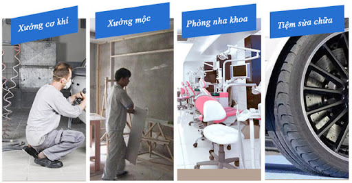 Trong nhà xưởng cơ khí, đồ gỗ máy cấp khí nén cho phun sơn, thổi bụi đồ vật, cấp khí cho máy bắn ốc,...